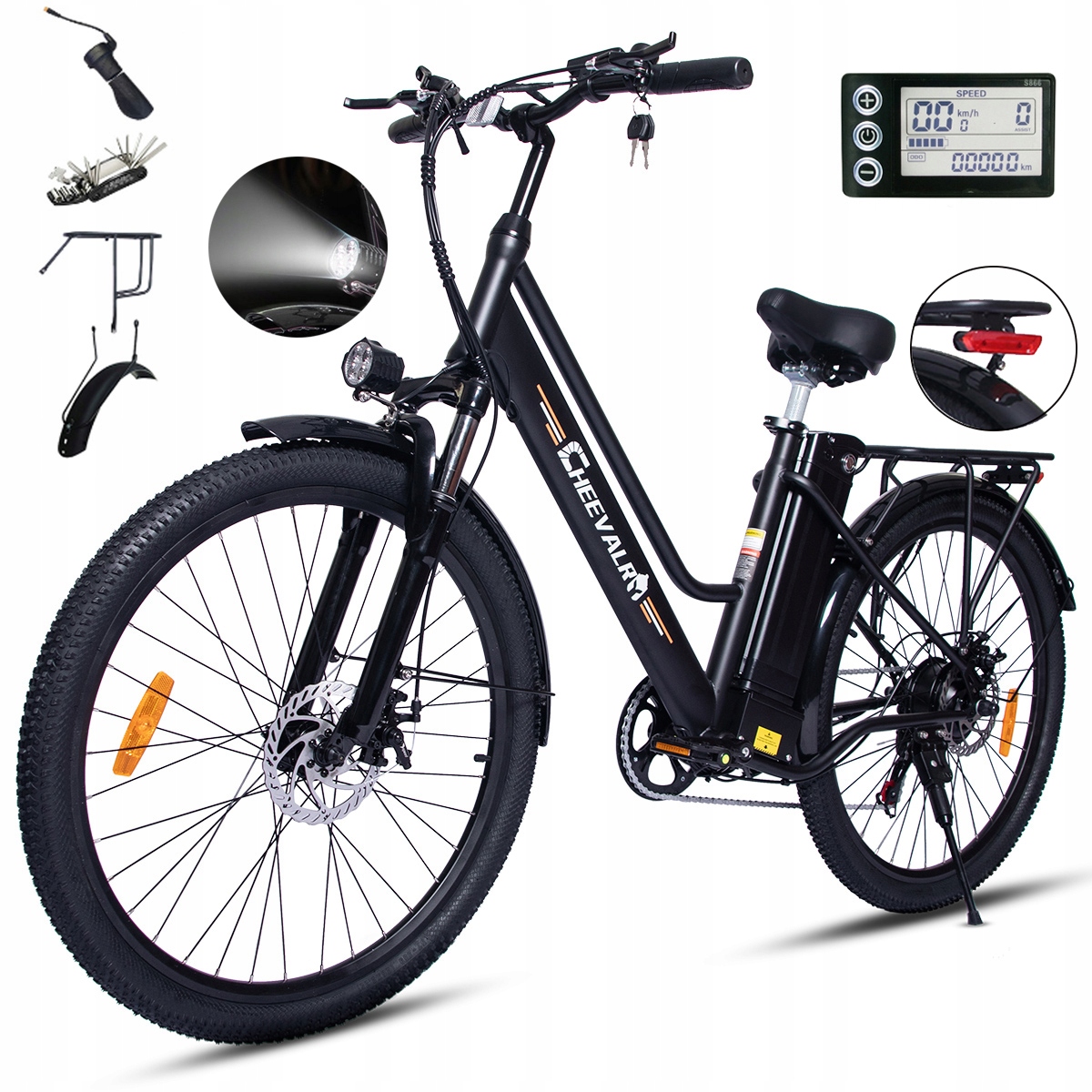 Cheevalry C26 Rower elektryczny Damski/Męski 250W 36V15AH 100km 26" Miejski Kolor czarny